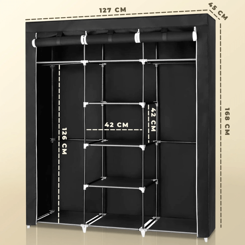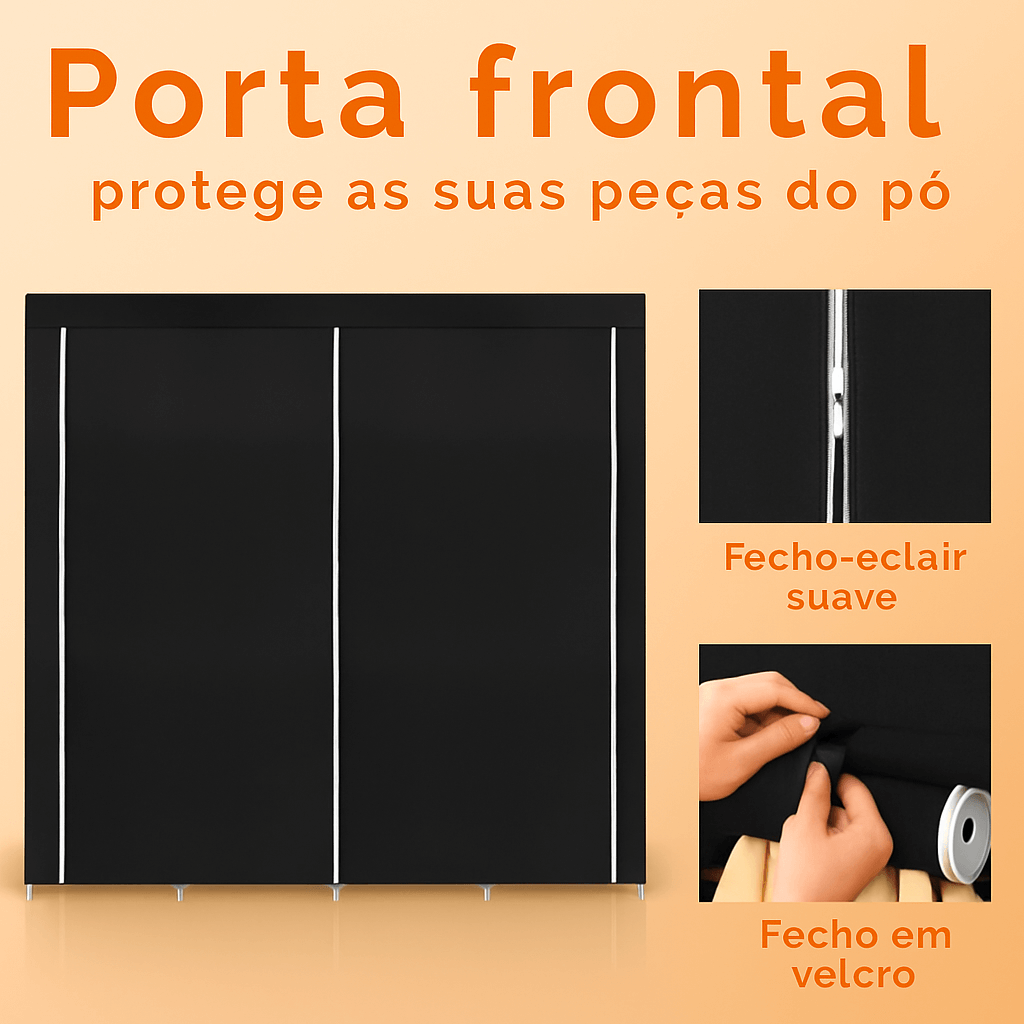 Com várias prateleiras e compartimentos, este armário de tecido portátil ajuda a guardar roupas, sapatos e acessórios de forma organizada, protegendo-os do pó.