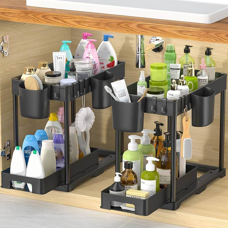 Cansada da desarrumação debaixo do lavatório ou da secretária? Este organizador mantém tudo em ordem!