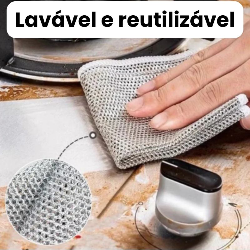 As esponjas comuns cheiram mal e desgastam-se rápido. Com o Pano de Arame, a sujidade desaparece em segundos – sem riscos e sem odores. É durável, reutilizável e fica sempre fresco após cada lavagem.